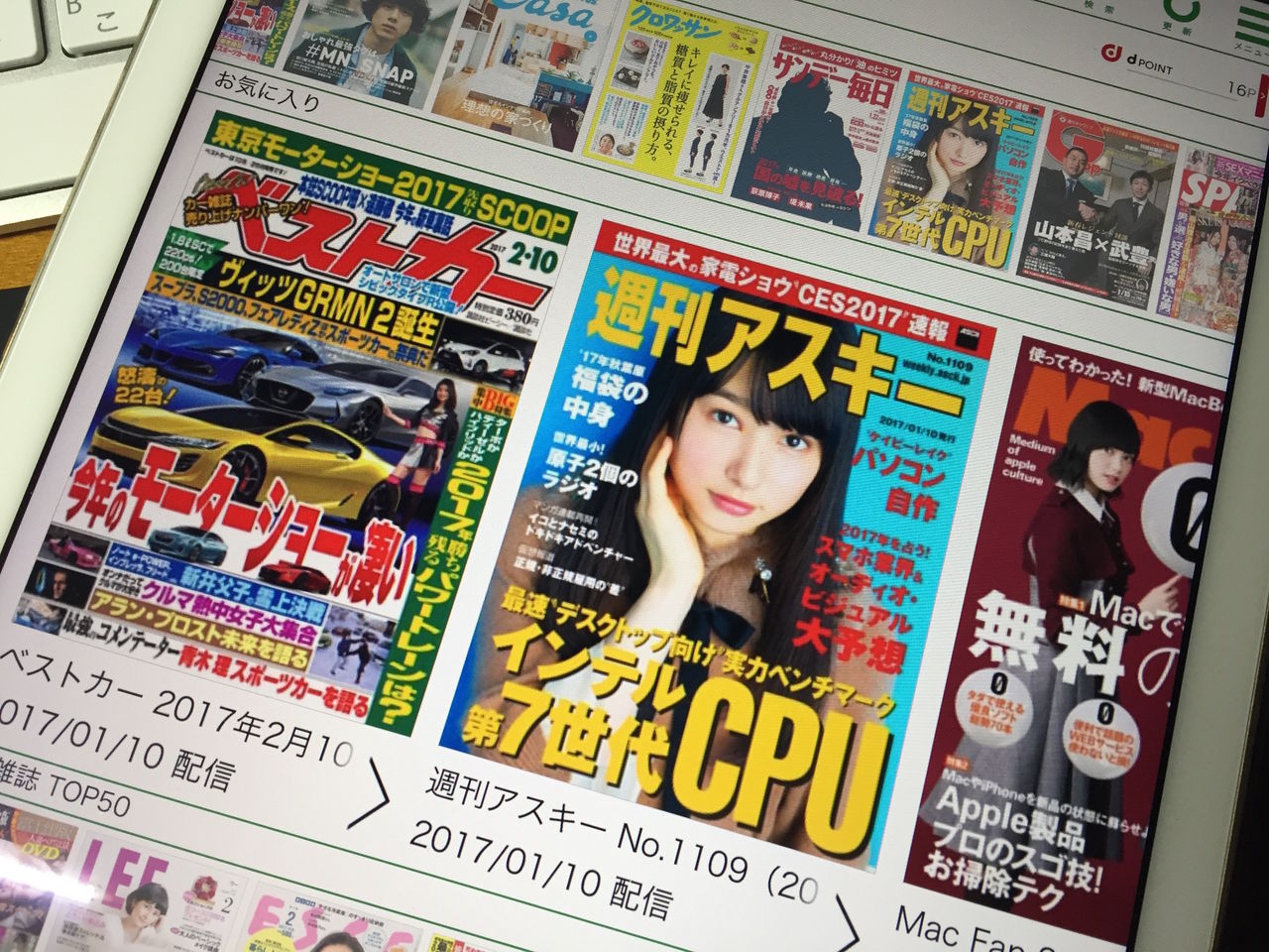 2017年01月11日 d-マガジンとKindle Unlimitedの利用率が下がってきた d-マガジンは170誌以上が400円(税抜き)で読み放題ということもあり、半年くらい前から利用していて、主にiPadで読んでいます。良く読んでいるのがMacFan、ベストカー、週刊アスキーあたりです。続きを読む